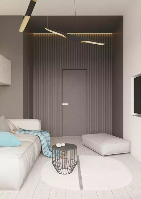 最為常見的一種隱形門就是與白墻、壁紙或油漆彩繪一致。如此的“隱形門”,不單最簡潔、造價上面也較廉價,可以確保和墻面有絕對的視覺統一感。