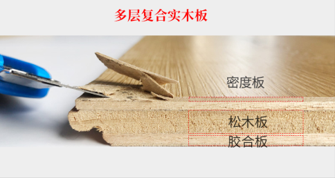 多層復(fù)合實(shí)木板剖面圖,能夠直觀看出多層板復(fù)合而成。