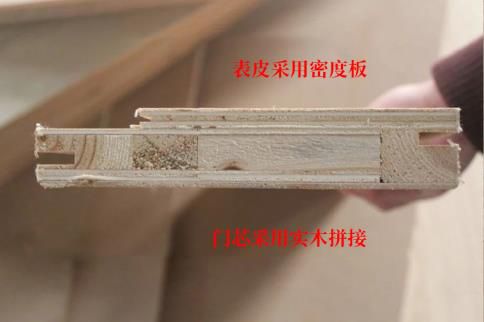 判定實(shí)木門(mén)是實(shí)木還是原木,能夠看木料橫截面,看出由多片實(shí)木拼接。