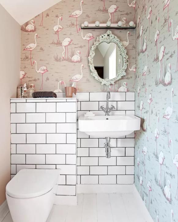 漂亮的鏡子、燈光和配飾增添了女性風(fēng)格,而帶有深色灌漿的地鐵瓷磚則平衡了外觀。一旦時尚改變了這個小空間,只需幾卷新壁紙即可輕松更新,以獲得全新的外觀。