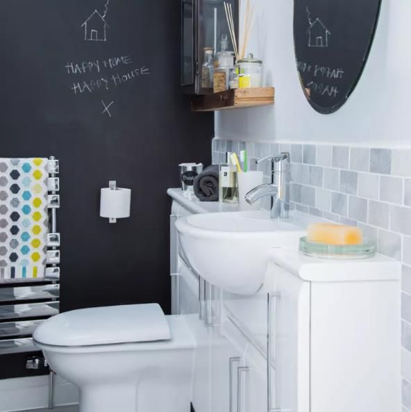 黑板漆讓您可以隨時改變前景。作為樓下廁所的想法,它創(chuàng)造了一個機(jī)會,可以為客人寫歡迎信息或在使用房間時思考令人難忘的名言。為如廁訓(xùn)練增添趣味元素是一個好主意或家庭浴室。