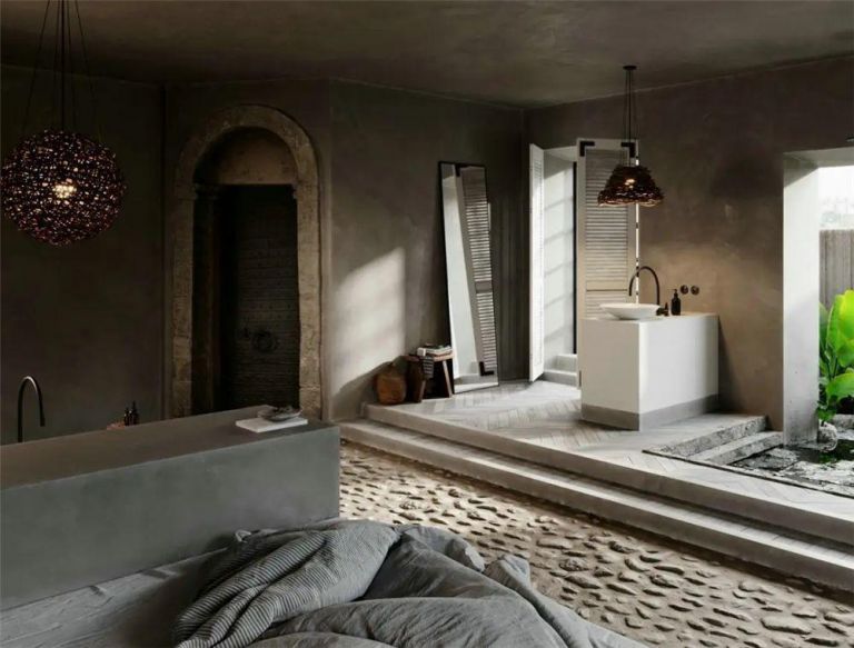 詫寂風也是這幾年比較火爆的裝飾風格,一般大戶型宅院中用得比較多,這種脫胎于日本茶道的專屬名詞,現在多被用來形容注重自然、簡陋質樸美感的家。