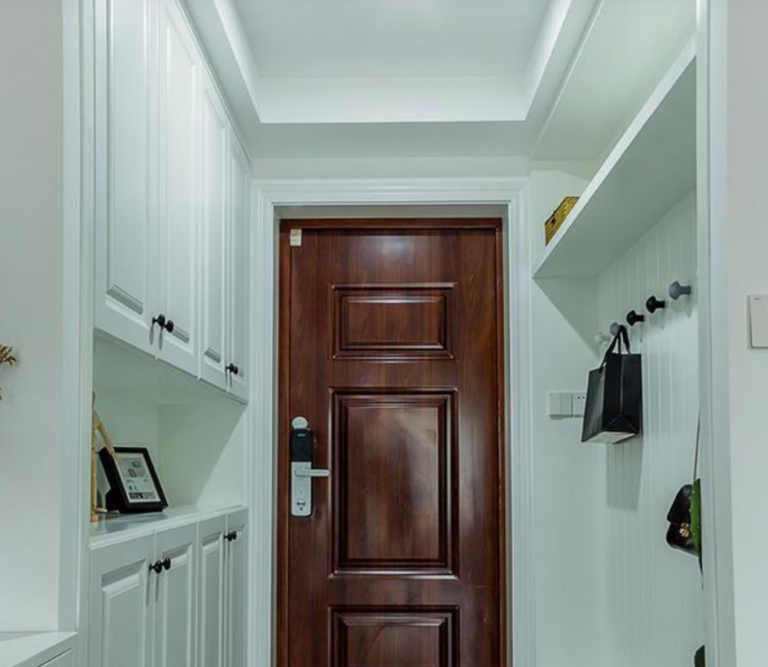 從入戶門進來擁有獨立的玄關,根據玄關空間兩邊都利用起來,其中一邊設計了入戶鞋柜,另外一邊設計了換鞋凳,包括安裝了掛鉤,可以掛包包或者衣物等。其實,入戶玄關兩邊這樣的設計,非常少見,但是很實用,不會讓人覺得有壓抑感,給人的感覺,很有設計感呢。柜子都是全屋定制的,質量與做工真心不錯,很是讓人喜歡!