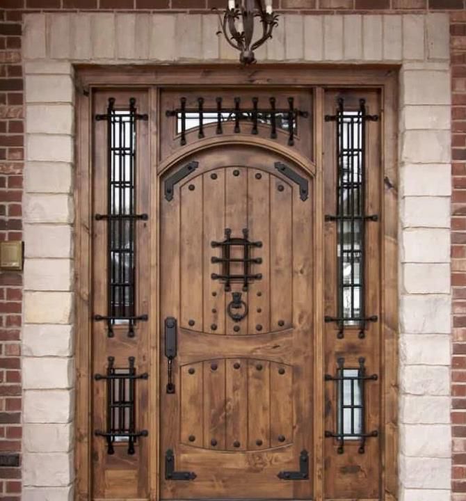 一種流行的前門材料組合是木材和鍛鐵。熨斗增加了裝飾元素,在某些情況下還增加了安全性。查看上面定制的仿古木和鍛鐵前門,這是使用這兩種材料的一個(gè)很好的例子。