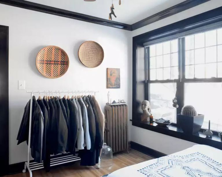 一間出租公寓的業(yè)主一個簡單但非常成功的衣柜設(shè)計解決方案:只使用一個金屬架子來掛大衣。平均高度,這種安裝不會影響小房間的空間。木制衣架營造出統(tǒng)一性,幫助房主的衣服不再凌亂。